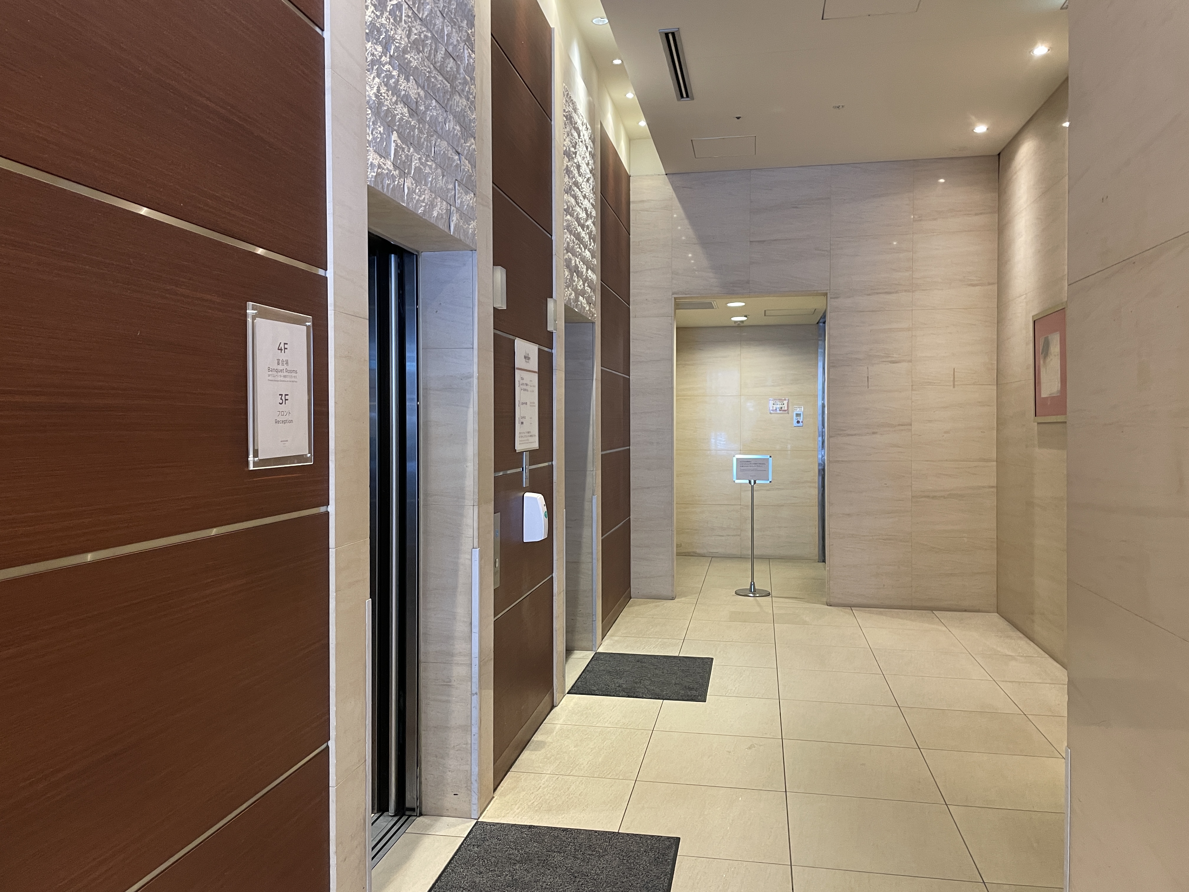객실에 들어갈 땐 3층부터 꼭대기층까지 운행되는 호텔 내부 엘리베이터를 이용할 수 있다.