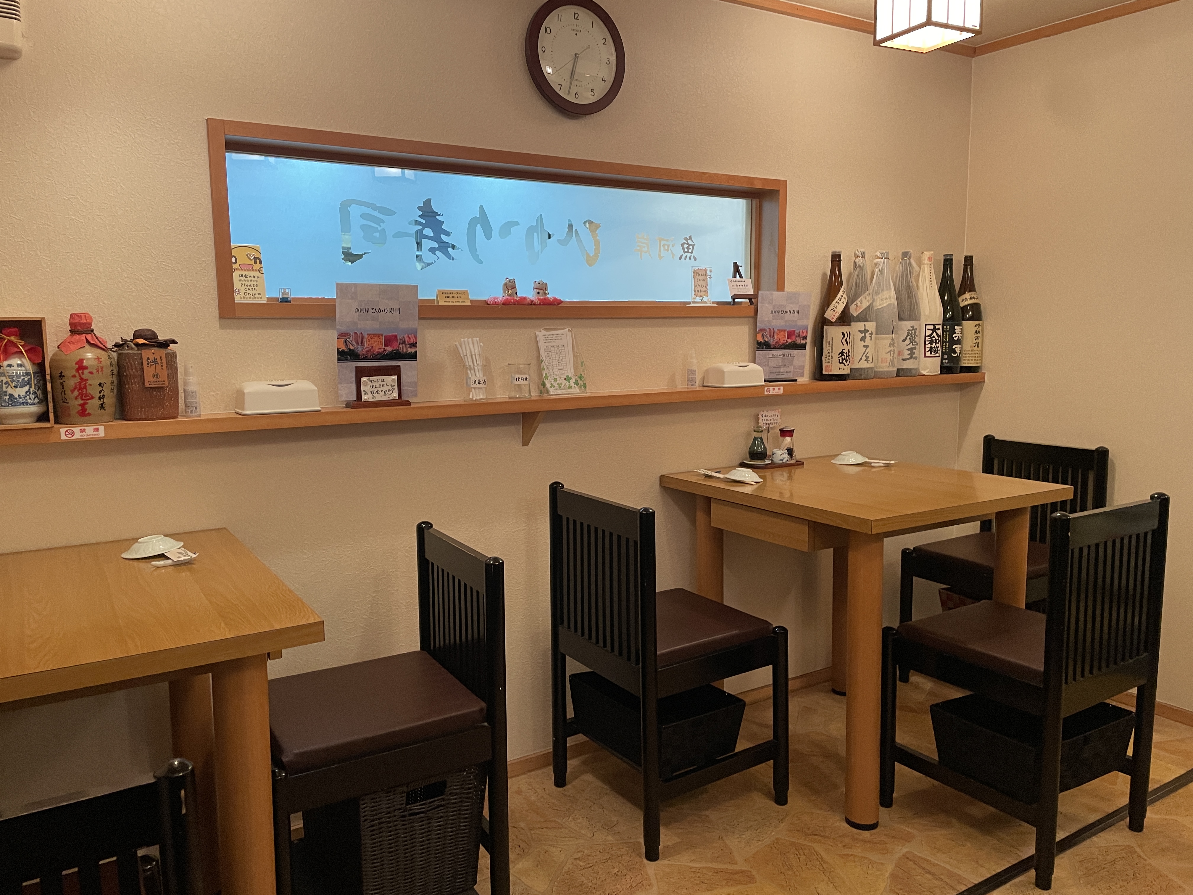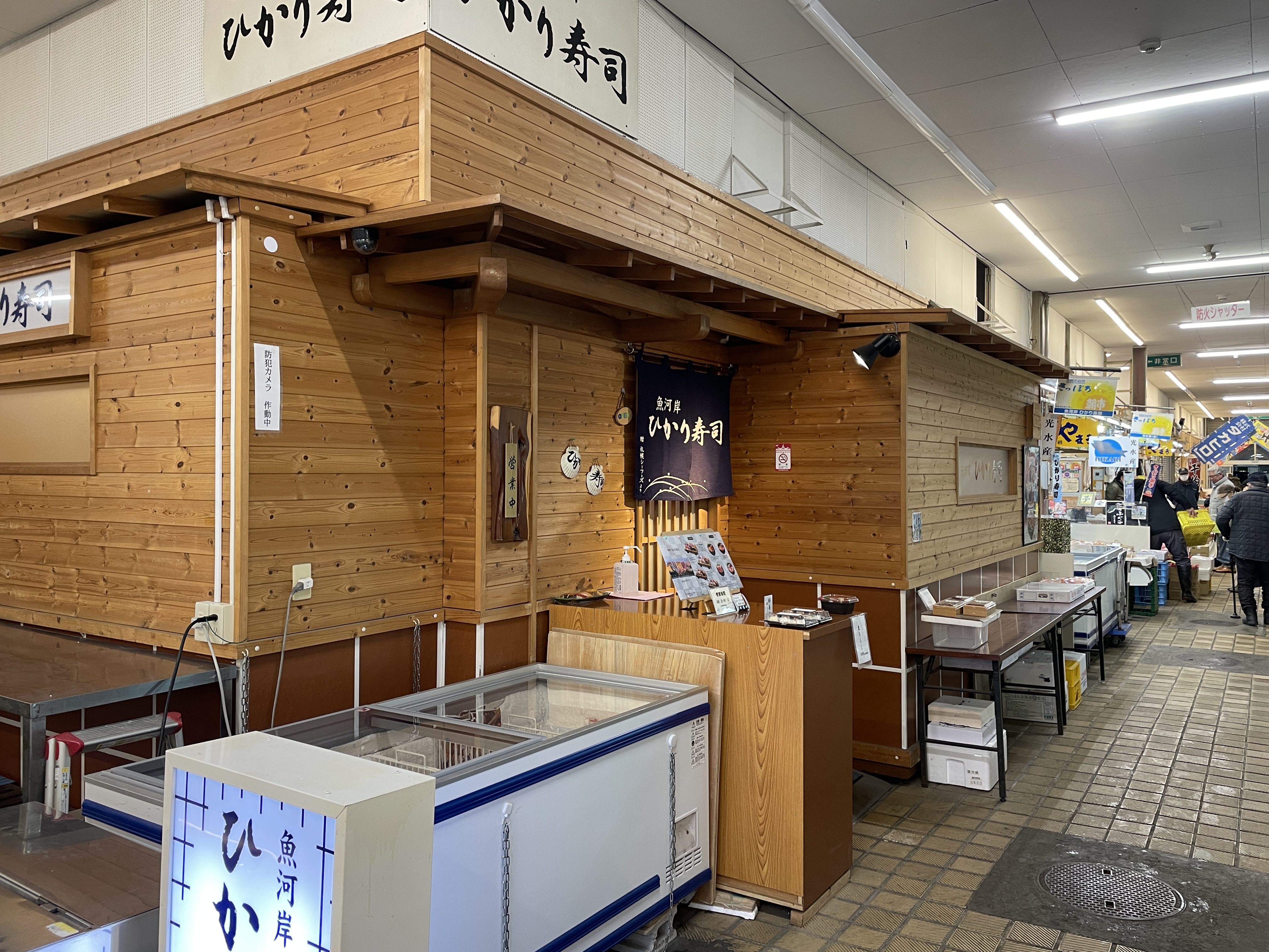 히카리 스시는 입구에 가까이 위치하고 있다.