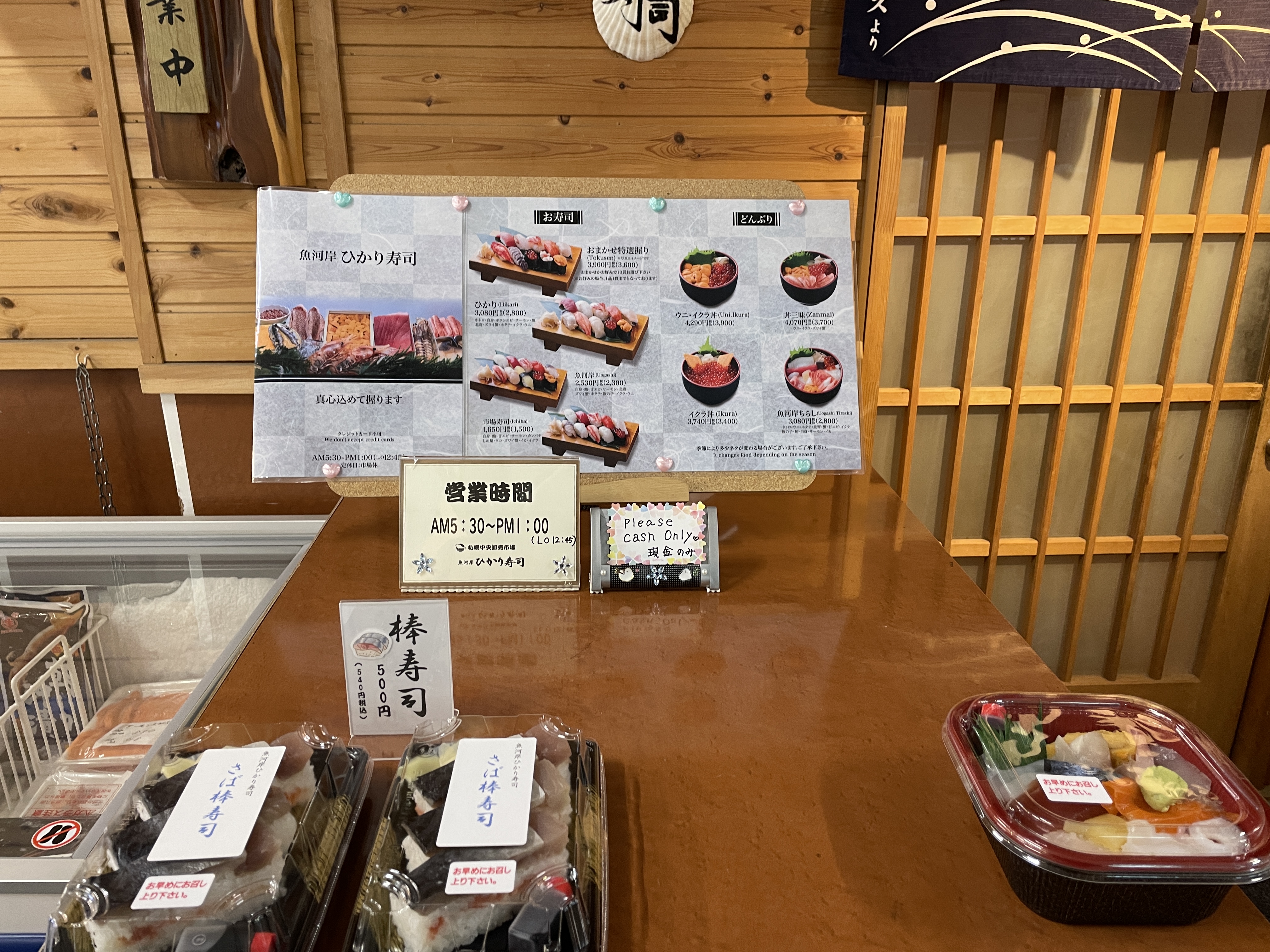 대개 수산시장이 오전에 활발하므로, 이에 따라 히카리 스시 운영시간도 새벽에 집중되어 오픈이...오전 5시 30....