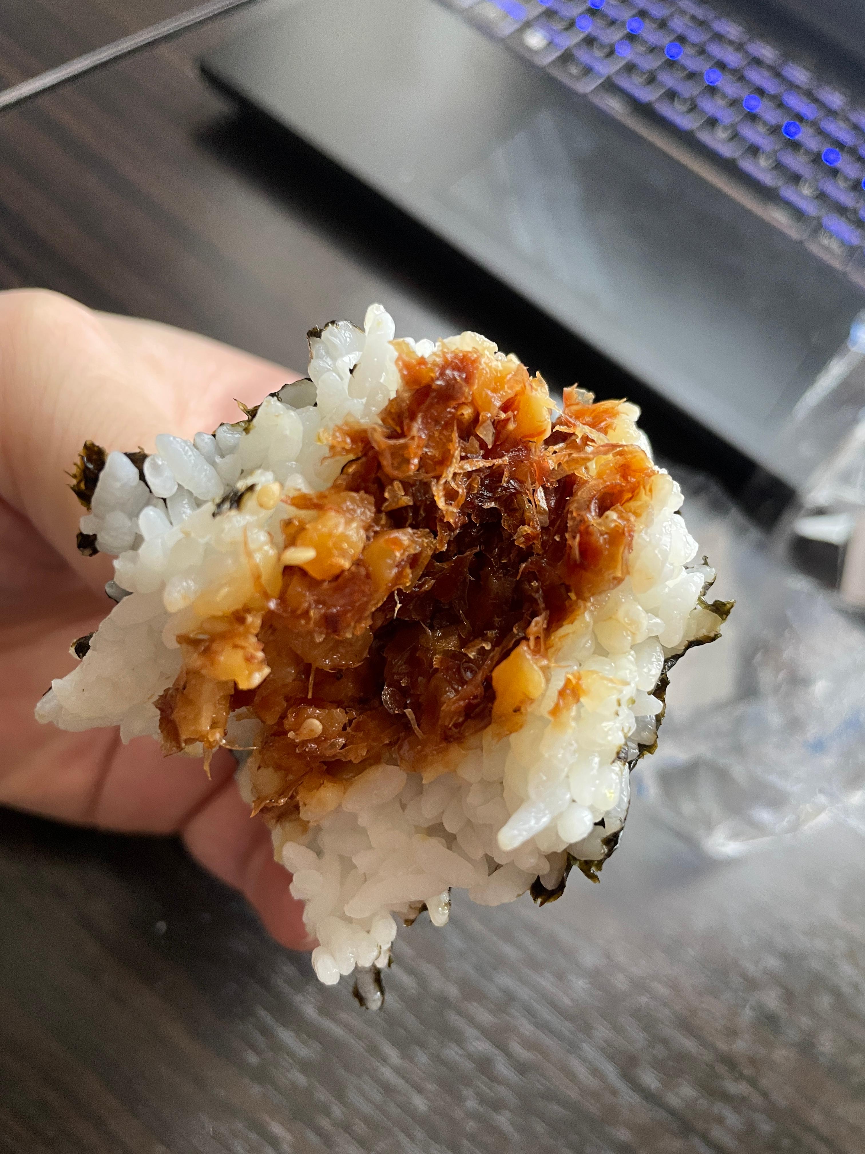 근데 와아... 오니기리를 따뜻하게 먹으니까 이렇게 맛있구나 싶더라.