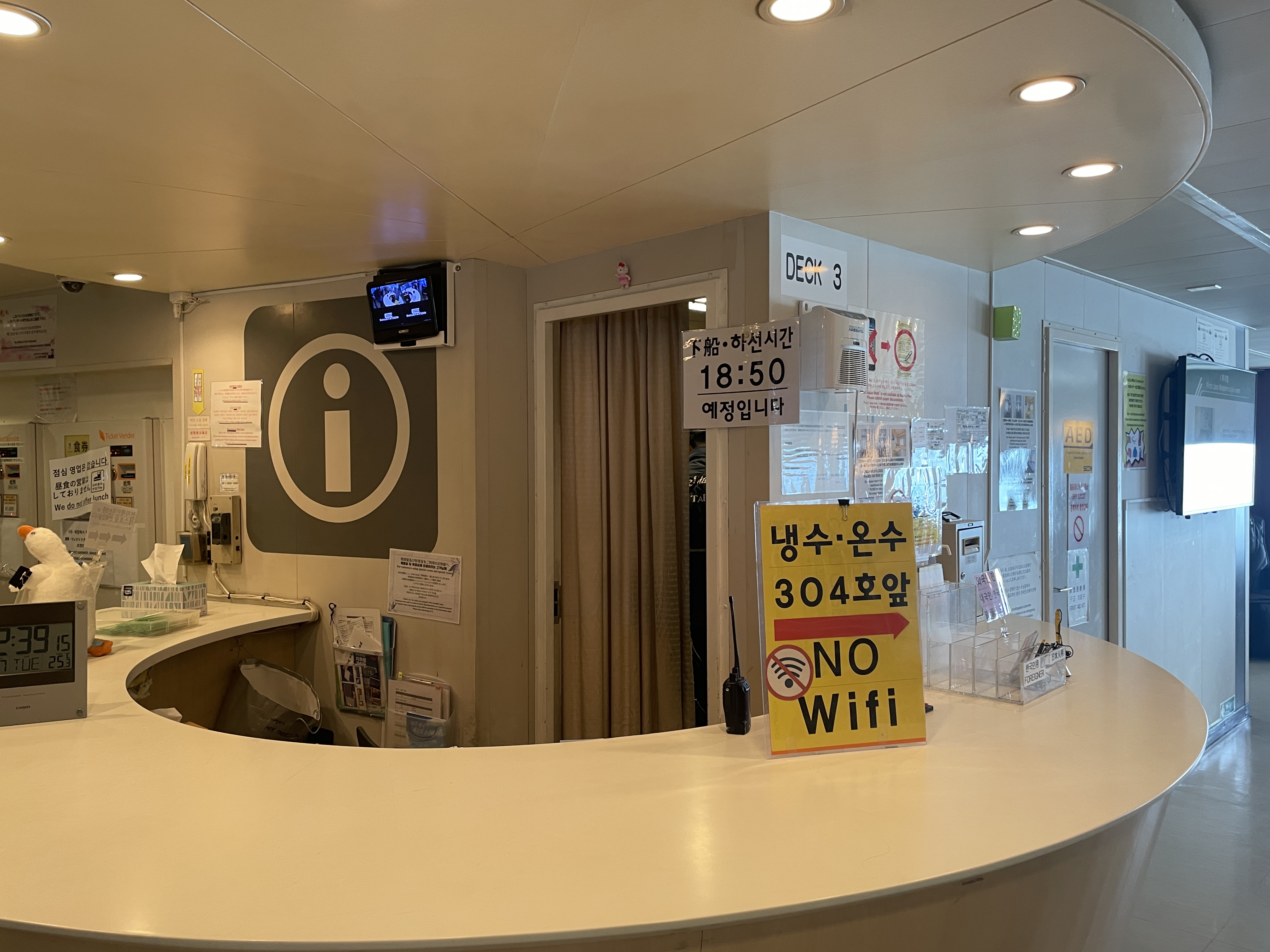 그래서 먹을거리도 가지고 승선할 수 있는데, 음식물같은 경우는 한국으로의 입국심사에서 문제가 발생할 수 있으므로 선내에서 해결하고 하선하는게 좋다.