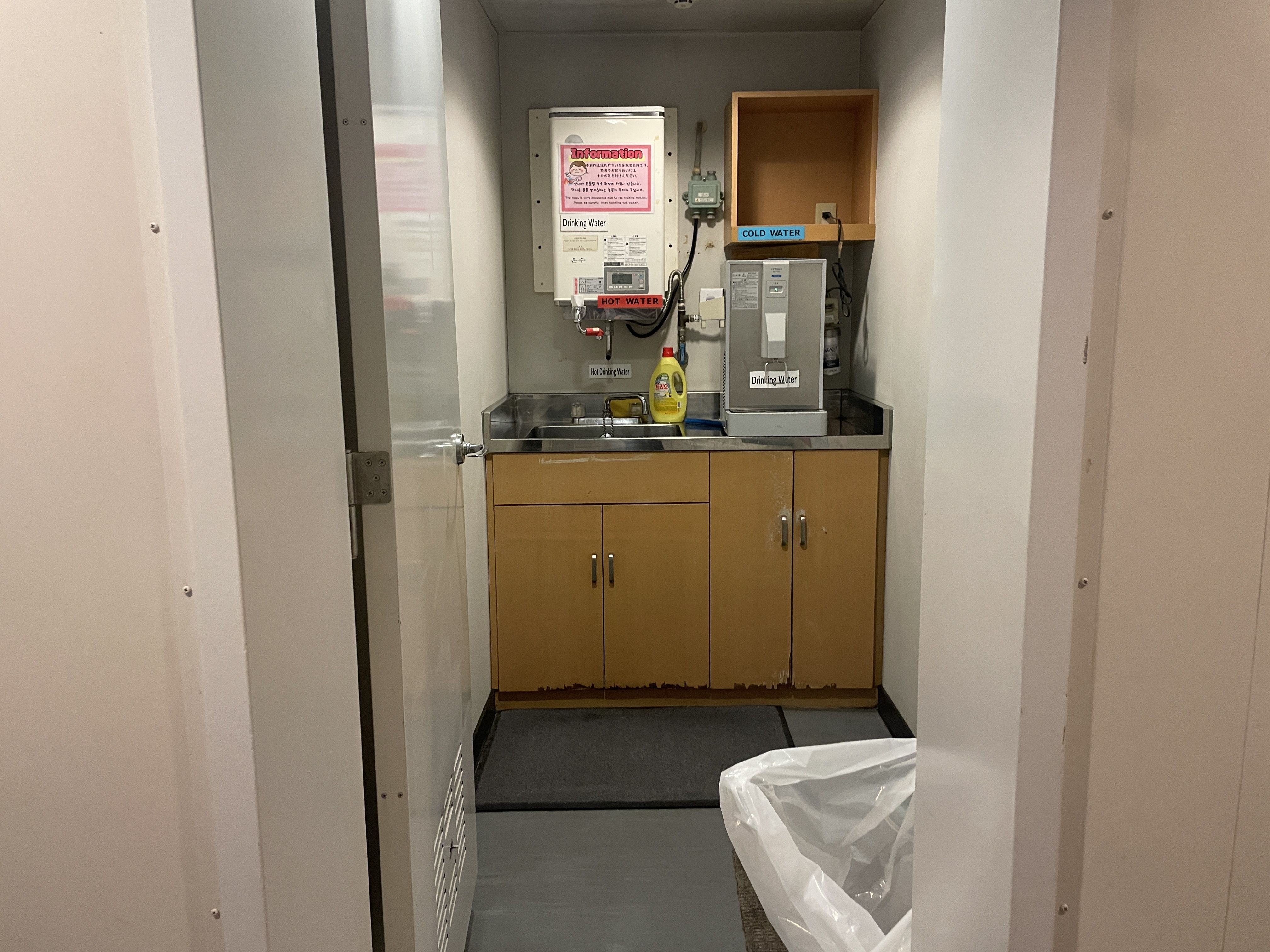 선내에 층마다 뜨거운 물이 마련되어 있다.