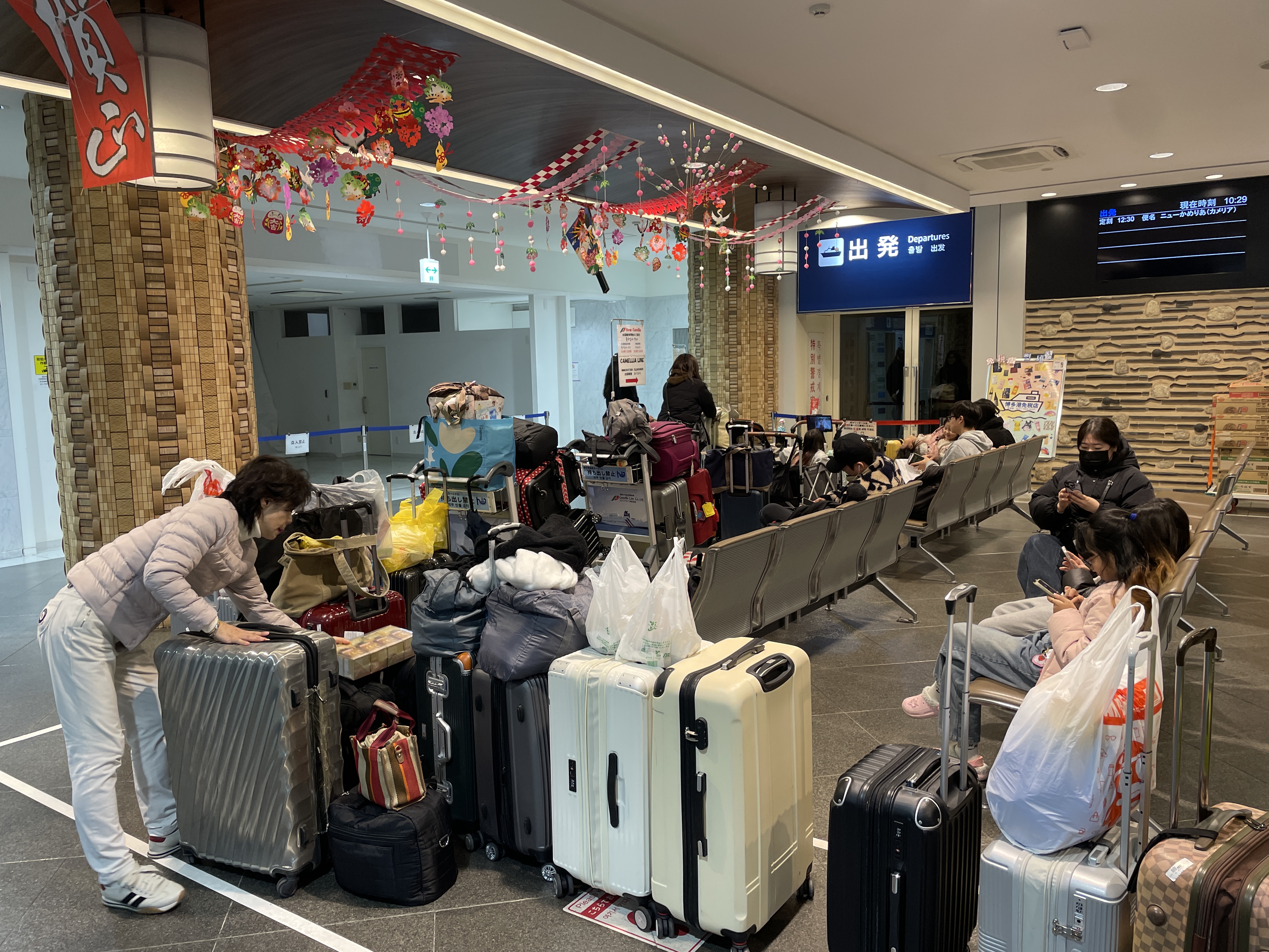 후쿠오카에서 부산으로 이동할 때, 배를 타고 들어가는 가장 큰 장점은 짐의 제한이 없다는 것이다.