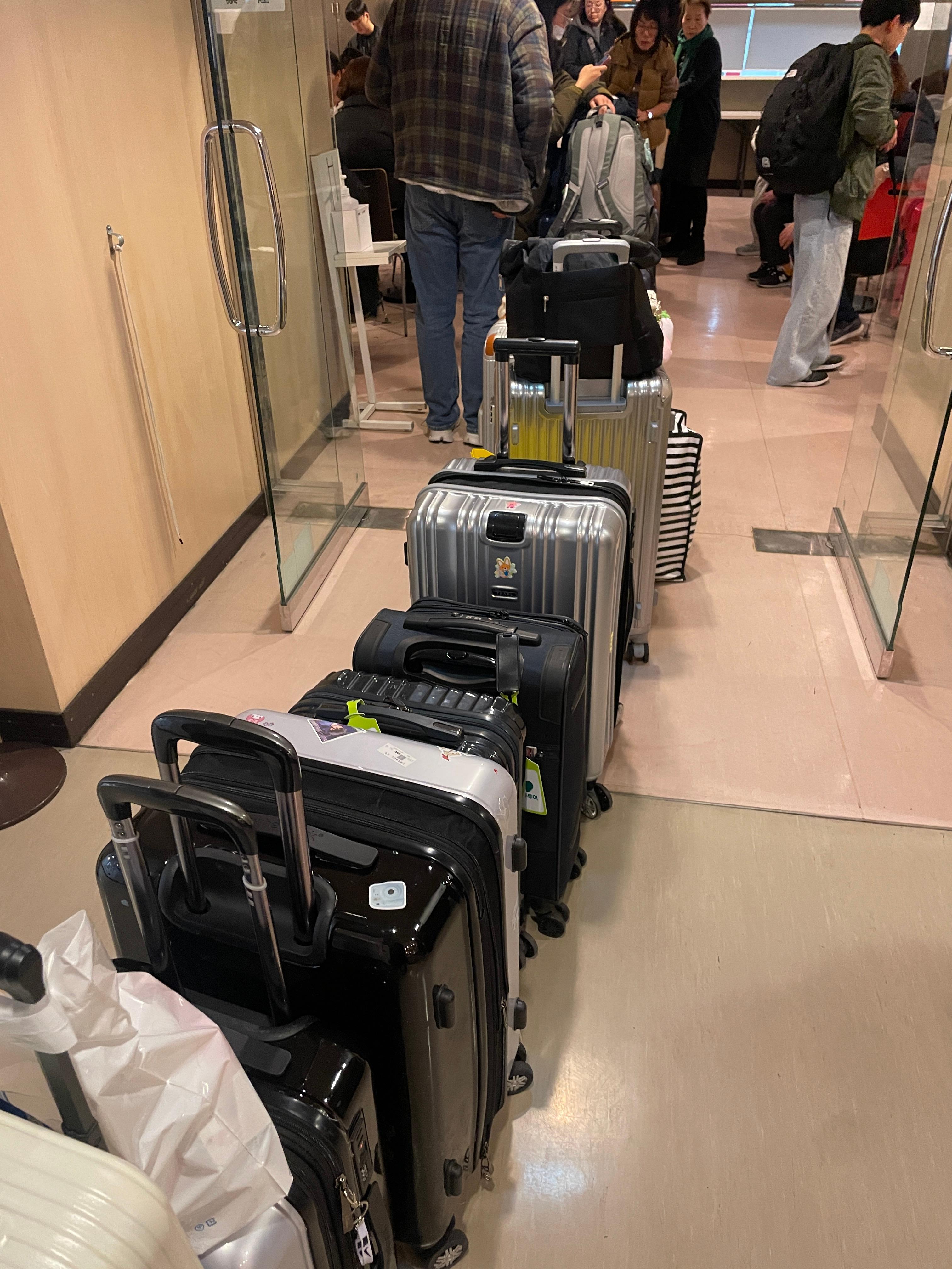 티켓을 들고 올라오니, 2층에 이미 단체관광객들의 캐리어로 줄을 이루고 있는 것이 보였다.